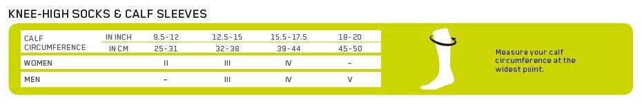 De juiste maat kiezen is belangrijk voor de werking van de kousen. De maat is te bepalen aan de hand van de maattabel.