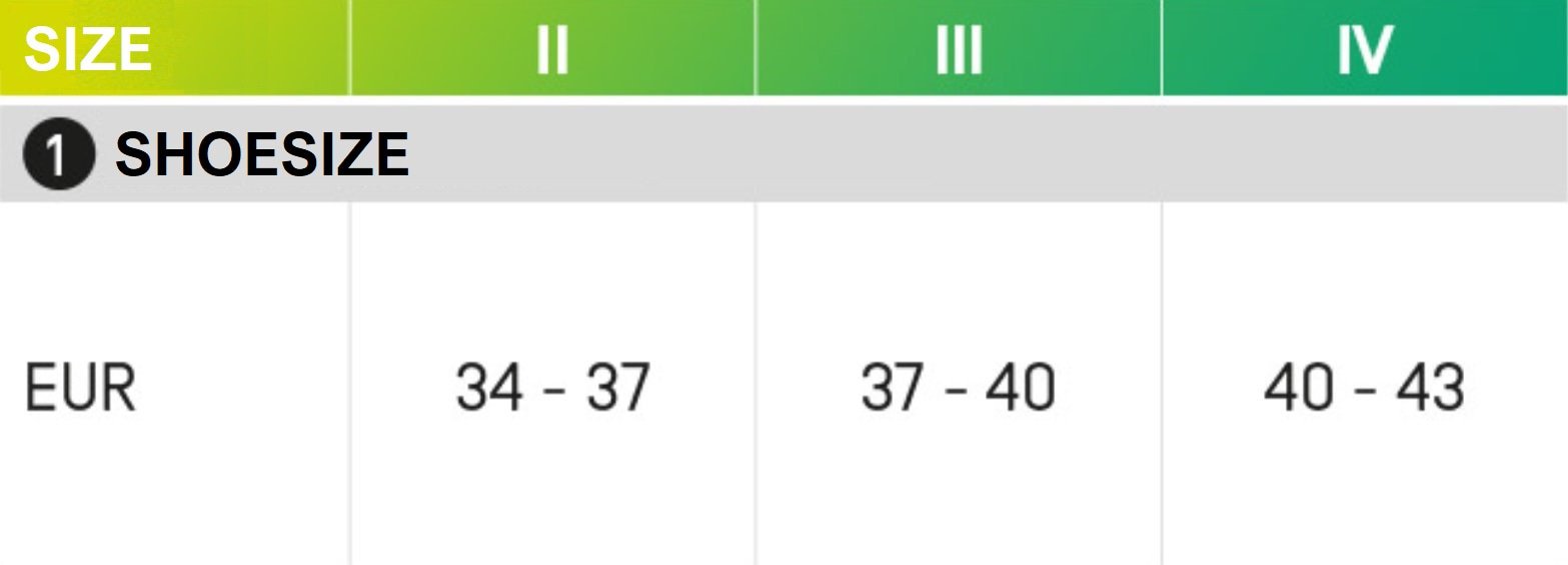 De juiste maat kiezen is belangrijk voor de werking van de kousen. De maat is te bepalen aan de hand van de maattabel.