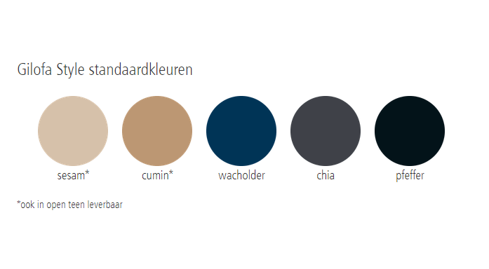 De zachte kleurtonen Sesam en Cumin markeren uw benen subtiel met een lichte glans zonder opdringerig te zijn. Deze natuurlijke kleuren zijn ideaal voor dames met lichtere huidtinten. De donkere tinten van het Gilofa Style kleurenpalet zoals Wacholder, Chia en Pfeffer zijn universeel inzetbaar en creëren een magische uitstraling. De intense kleuren van de kousen strelen uw benen en laten u in mysterieuze pracht verschijnen.
