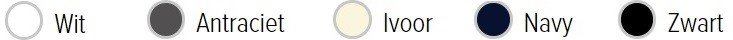 Verkrijgbaar in de kleuren: wit, antraciet, ivoor, navy & zwart.